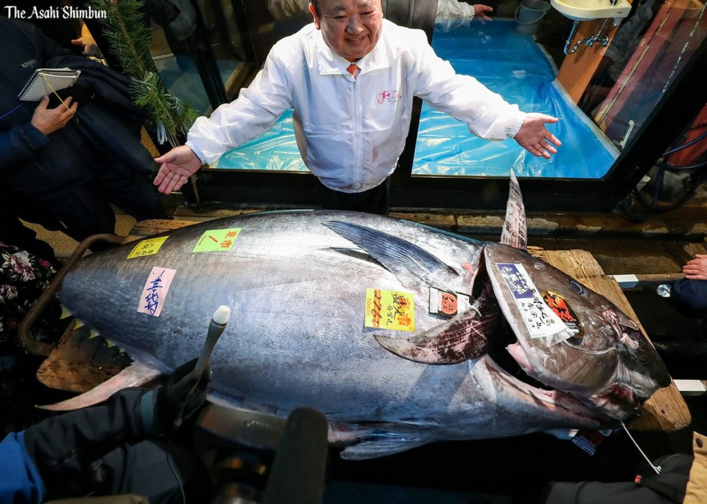▼這次拍賣中,一隻在青森縣大間海域被釣起的黑鮪魚備受矚目。它重達276公斤,拍賣價格一路走高,最後以1億9320萬日圓(約台幣5300萬元)被築地知名餐廳「喜代村」買下。