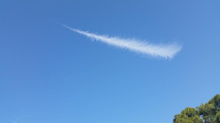 ▼天空中有一片巨大的羽毛。
