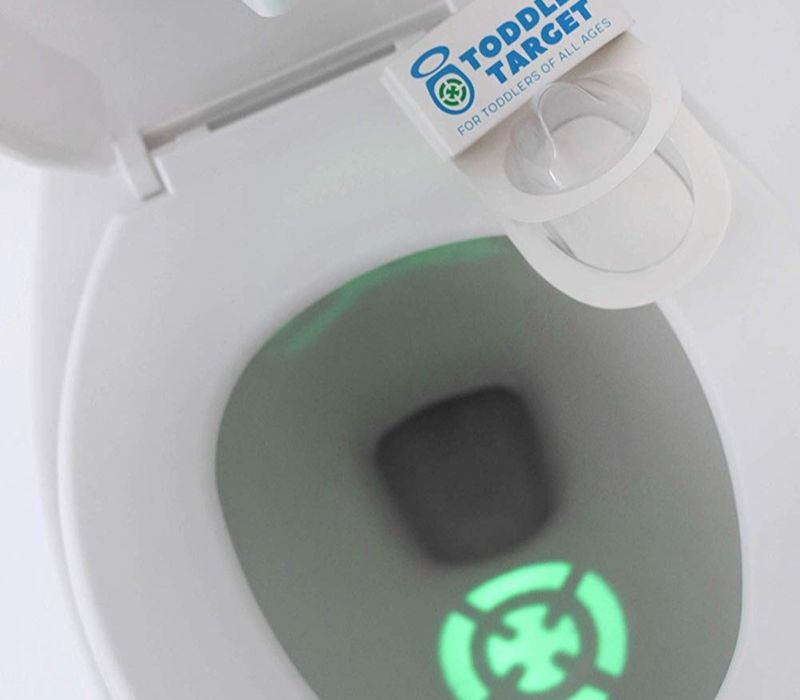 ▼「Toddler Target」是一款專門訓練如廁用的投影機。將它安裝在馬桶蓋上,綠色的目標就會投射到馬桶裡。孩子可以瞄準目標,慢慢掌握「紓解」力道。