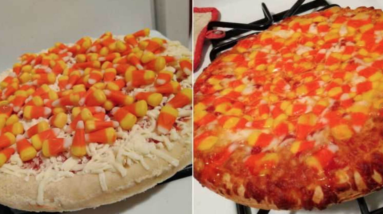 ▼更扯的是,竟然有人把糖果也丟到披薩上面?!