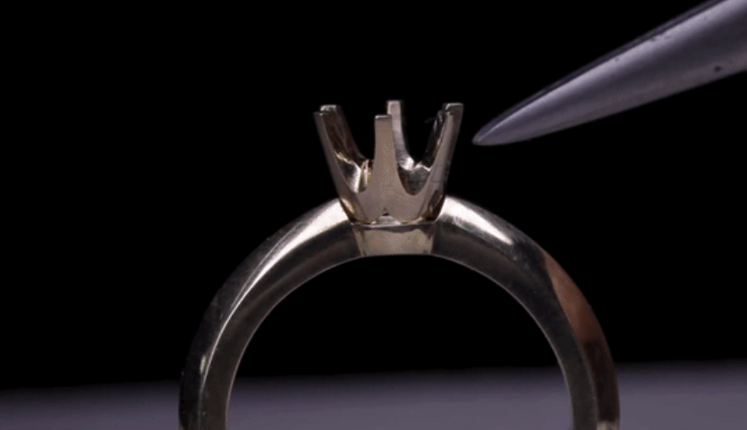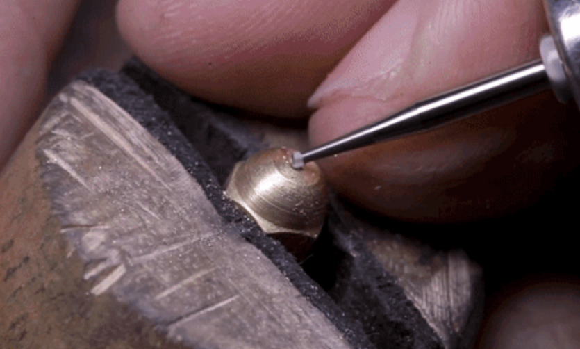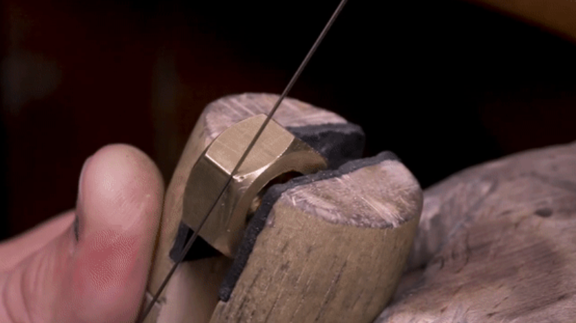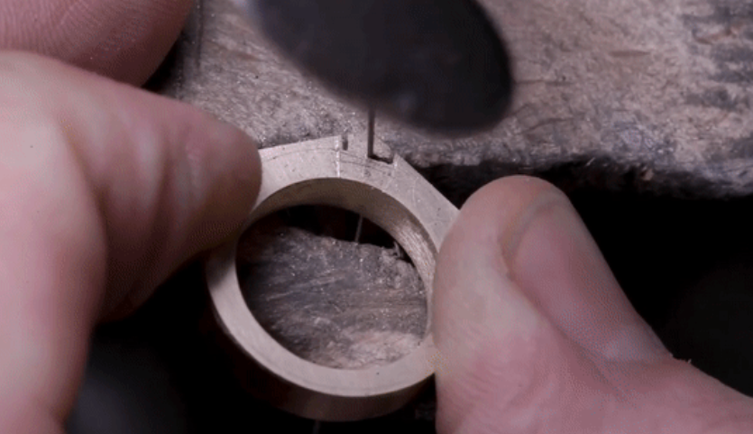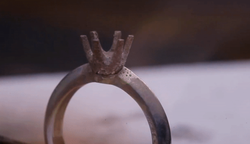 ▼4.製作鑽托造型 :用鋸子磨出鋸齒形狀。Pablo做的是最常見的六爪鑲嵌,6個爪子固定住鑽石,非常牢固;