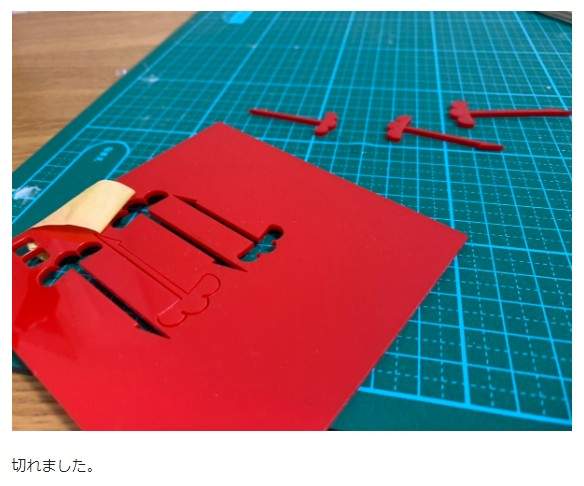 ▼推主還分享了製作的過程。他先用電腦繪圖設計出符合小雞饅頭大小的雞冠造型叉子,再把壓克力板帶去店裡切割,雞冠叉子就做好了。