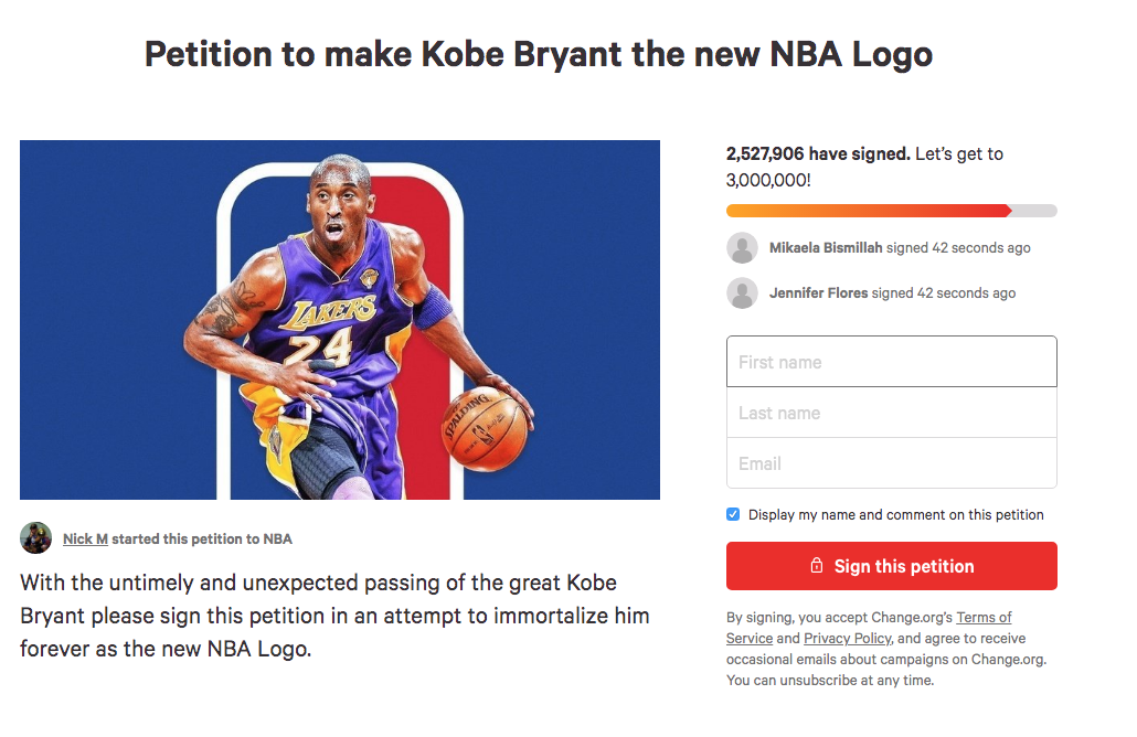 Kobe 離去後,NBA已提前宣布今年將他列入名人堂、許多籃球界人士也紛紛建議聯盟可以更改標誌以紀念 Kobe的傳奇一生。如果你也支持這項活動,請「點我」進行連署!