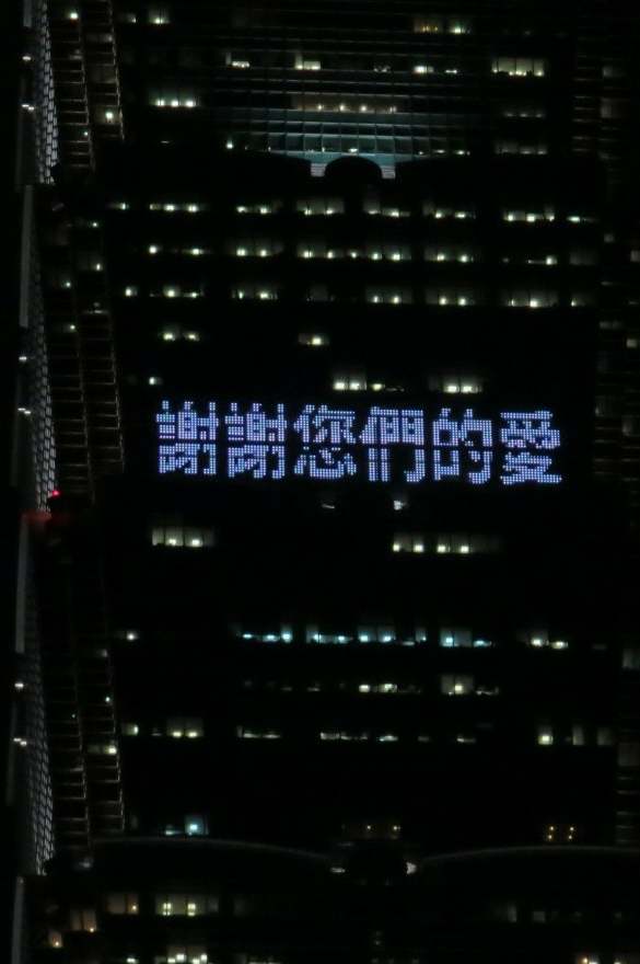 ▼燈光顯示會在大樓北面,約59樓至60樓的外牆秀出,希望大家也可以幫集氣加油。