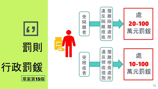 ▼今天通過特別條例,將來未依規定居家隔離、檢疫之民眾,將可依下圖最高處100萬元罰鍰。