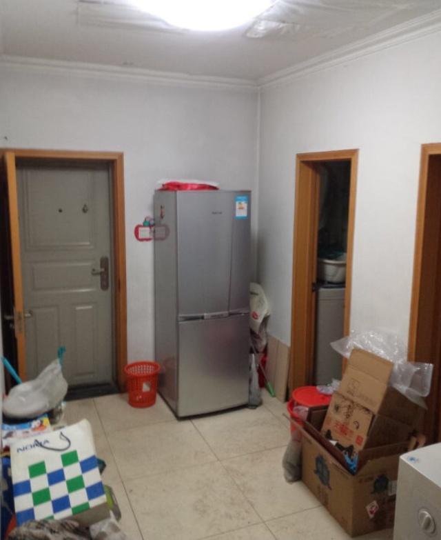 ▼改造之前這就是一套非常簡陋的舊公寓。一進門堆放著亂七八糟的雜物,門右邊擺放著一臺冰箱,看起來很突兀。