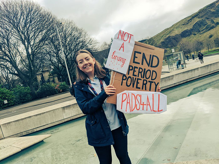根據2017年的一項調查顯示,14到21歲的英國女孩中,15%負擔不起衛生用品。她們只能向朋友借用,或自己製作簡易的替代品,每次生理期都非常尷尬。蘇格蘭正準備立法,免費向所有婦女提供衛生用品,一旦通過的話就是全球首個採用這種做法的地區了~