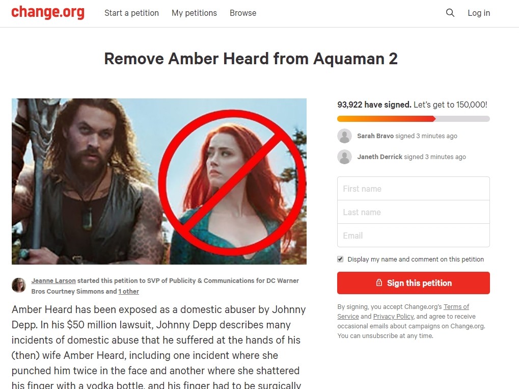 ▼網友們認為安珀赫德滿口謊言,甚至發起連署,向DC要求讓她退出《水行俠2》班底,並建議換成艾米莉亞克拉克(Emilia Clarke)在續集中出演「梅拉」這個角色。