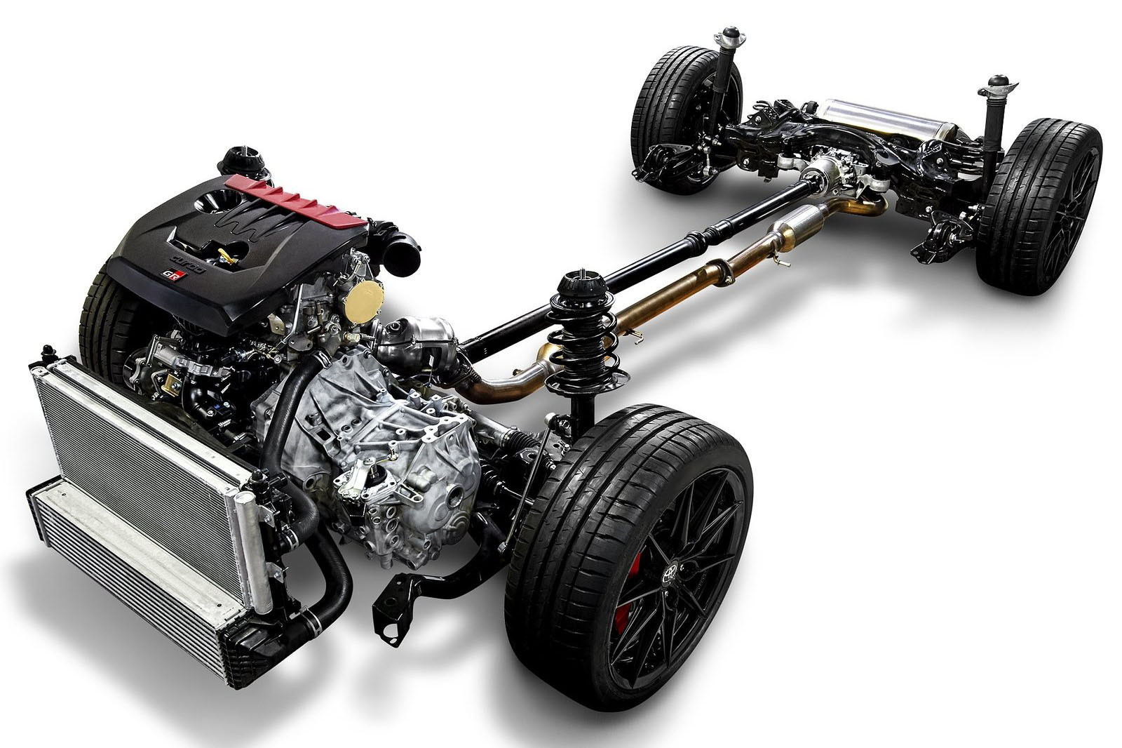 ▼這款車採用全新GR-FOUR四輪驅動系統,還使用了大量輕質材料,整輛車的重量只有1280公斤。0-100km/h加速只需要5.5秒,極度則以電子限制在230km/h。它的底盤由前端GA-B、後端GA-C組成專用平台,能夠容下GR-FOUR四驅系統。