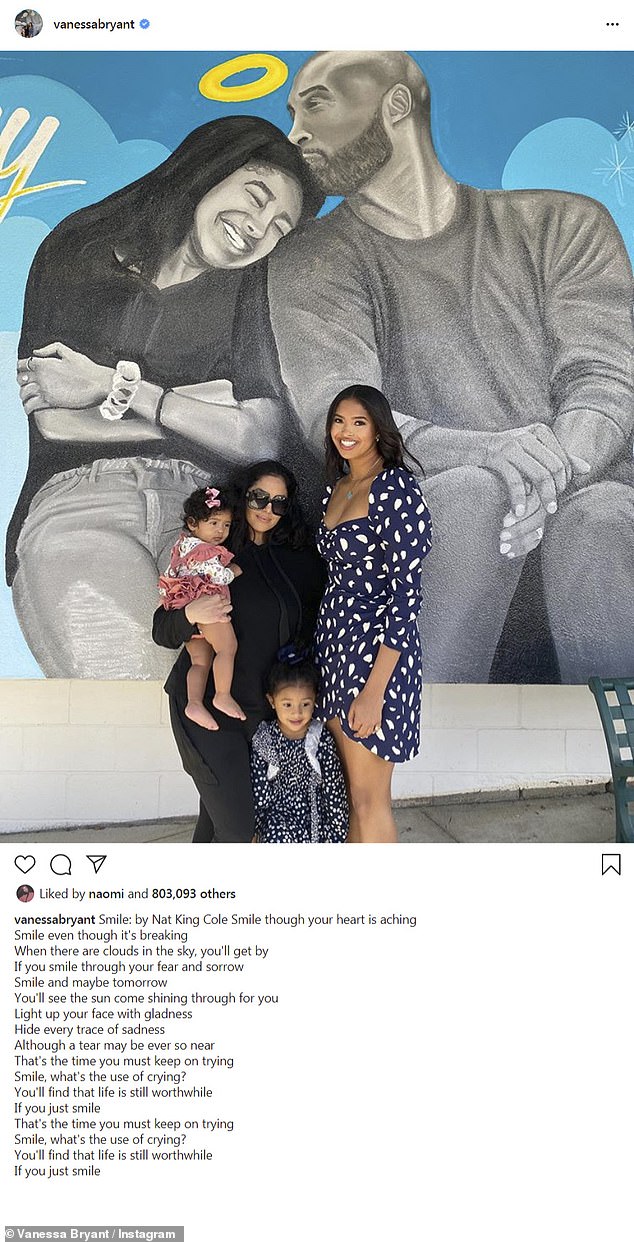 ▼壁畫中布萊恩跟Gianna的畫像是根據2019年時這對父女在一場NBA球賽上的照片而創作的。現在物是人非,讓人唏噓不已。