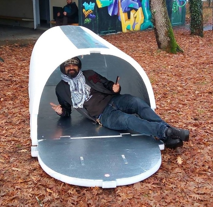 ▼Geoffroy曾在蒙特內哥羅(Montenegro)工作好幾年,2017年回到巴黎後,他發現街頭有很多流浪漢。他決定用自己的工程技能做些什麼,於是設計了這款雪屋。