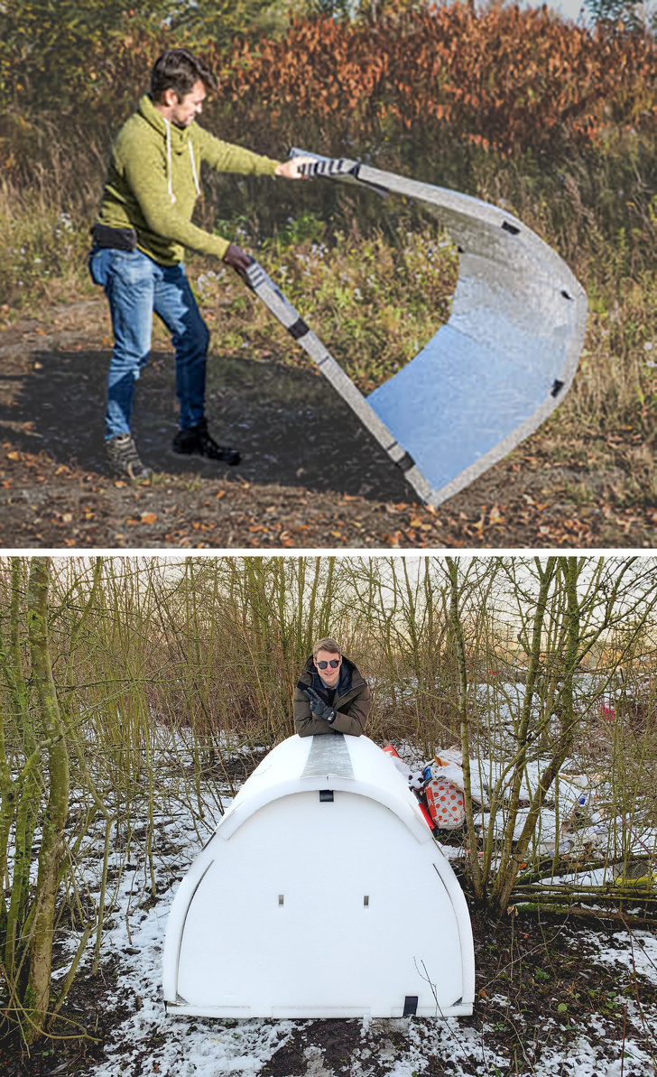 2020年03月16日寒冷的冬天人們都想待在屋內,但街友們卻無處可去,只能找一些比較溫暖的公共場所避寒。法國工程師Geoffroy de Reynal設計了一款類似愛斯基摩冰屋的可摺疊式輕便小屋,希望能幫助街友們。