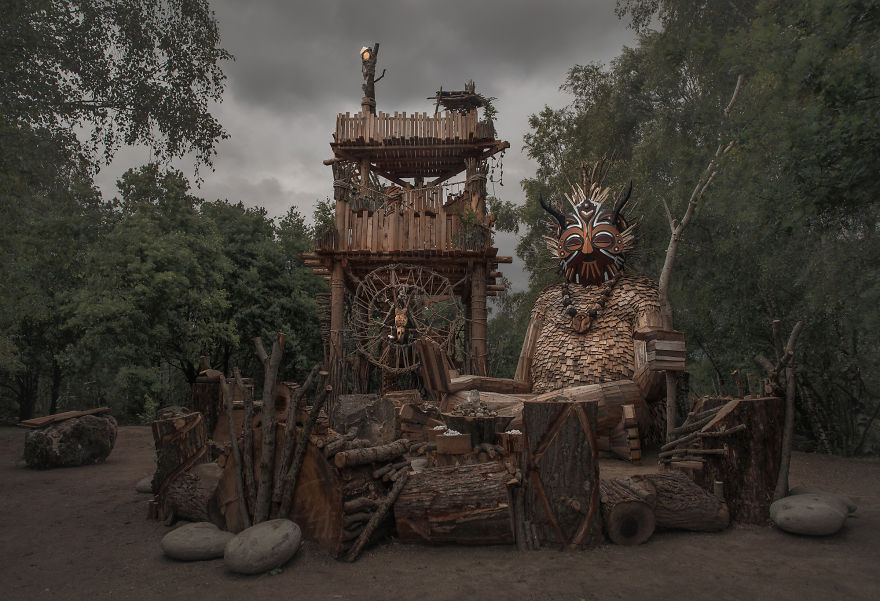 ▼Thomas曾在世界各地的叢林中造夢,這次他來到比利時,在叢林中留下了一座名為《The 7 Trolls and the Magical Tower》的作品。這個作品由7個7公尺到18公尺高的巨人,還有一座17公尺高的高塔組成,Thomas為巨人們創造了有趣的背景故事。