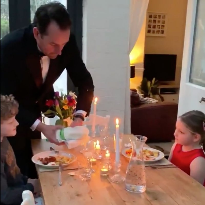 2020年04月06日近來全球都人心惶惶,尤其歐洲的情況越來越嚴峻,民眾都需待在家中隔離。英國老爸Ben Moore趁此機會跟孩子們玩起餐桌遊戲。他裝扮成頂級餐廳服務生,在小孩用餐時提供高檔的服務。那有趣的畫面看起來有趣又溫馨。