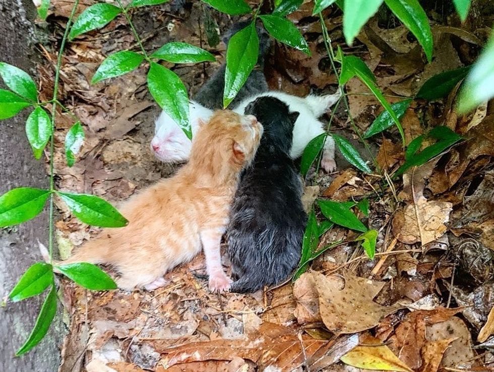 ▼遇到大雷雨的貓媽媽,不得已只能將小貓寶貝們往樹叢裡塞來保護牠們,當地屋主發現後,擔心這一窩貓咪們的在雷雨中的安全,便聯絡了動物救援團體Sparkle Cat Rescue。救援團體的志工凱莉(Sarah Kelly)即時聯絡到了願意收留這一窩貓的寄養家庭。