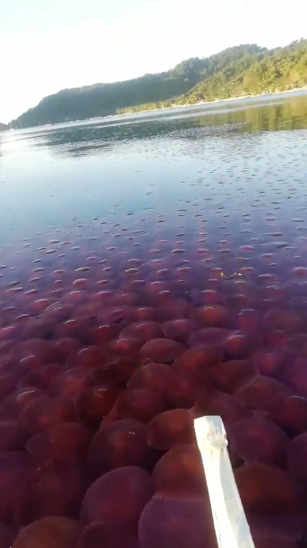 2020年04月13日近來菲律賓開始實行封閉措施,人們也都待在家做好健康管理、避免出門群聚;巴拉望島是菲律賓的高人氣景點,平時非常熱鬧,現在觀光客變少了。但最近巴拉望島附近的水域卻出現了讓人驚奇的畫面-海面上竟然出現了無數粉紅色的水母!
