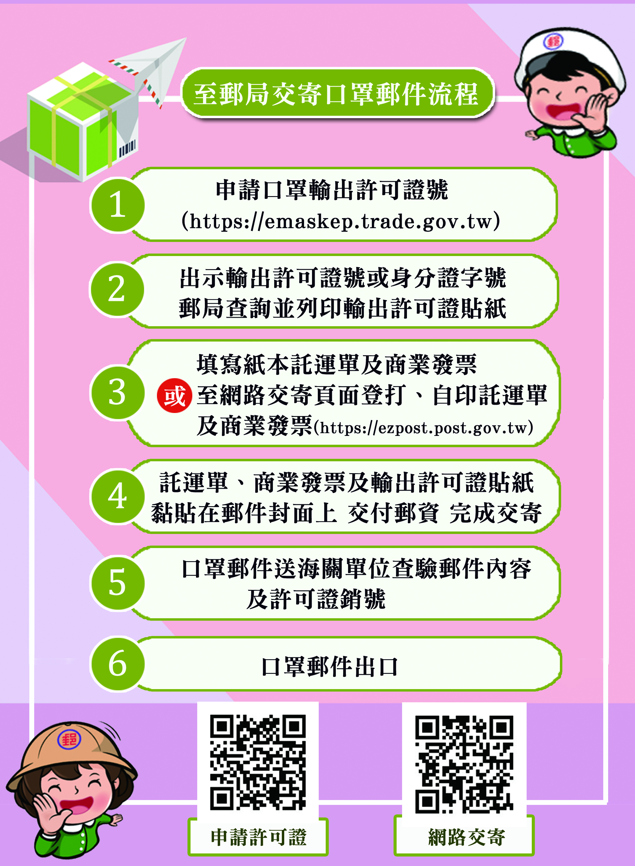 聽說現在國外有的口罩要價相當貴,有更多時候甚至是有錢也買不太到,最近又要延長禁止口罩出口到6月底,對於身在海外的國民而言,能收到這些由國內親人寄出的口罩,相信真是非常的重要!民眾要寄送前,都先請國外親人了解一下當地的管制規定一下比較好唷!