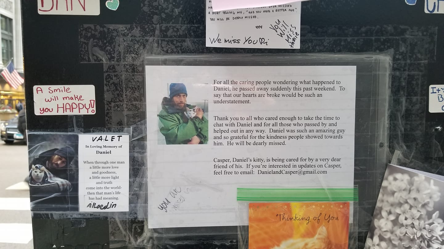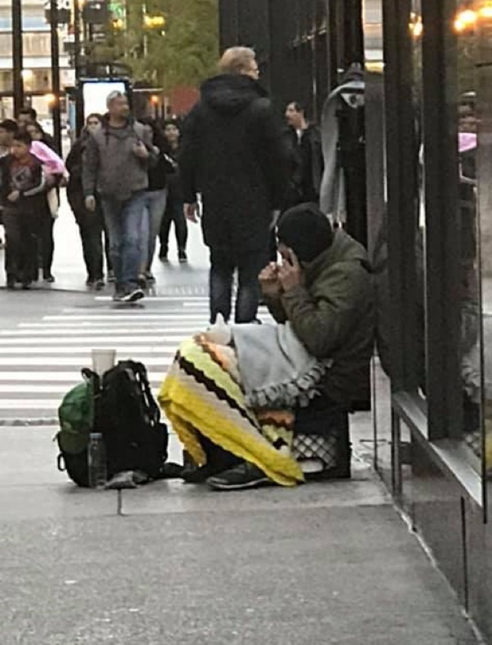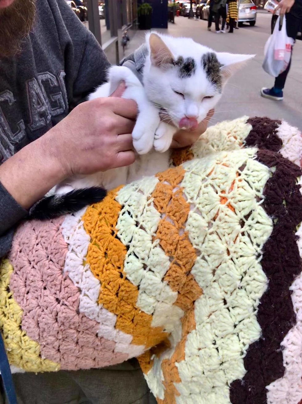 2020年04月30日美國威斯康辛州的一個收容動物組織「Safe Haven Pet Sanctuary Inc.」的創辦人Elizabeth Feldhausen在一個週末到訪芝加哥,因緣際會下,在往旅館的路上,她遇到了一位街友正在街角逗弄著一隻貓咪,本著愛貓的心,Elizabeth拿出20元美金上前遞給了這位男人,並向這位男子攀談了一下,結果聊到貓咪,這位男子的臉龐上面露喜悅。