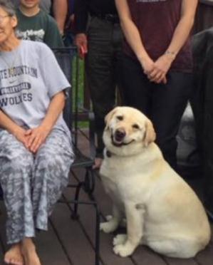 ▼就是你!右手邊那隻拉不拉多汪汪,「龐大」的身軀,配上一個「側歪頭」看鏡頭的角度,還懂的露出傻傻的萌笑,很懂嘛!