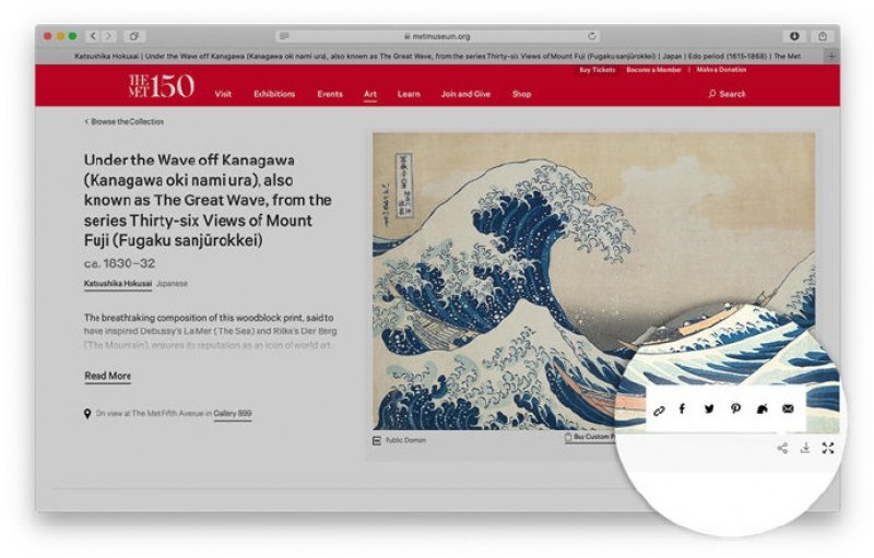 ▼如何用大都會藝術博物館的展品裝飾自己遊戲中的家呢?首先從博物館官網中找到自己喜歡的作品,注意看作品下方《動物森友會》的葉子符號: