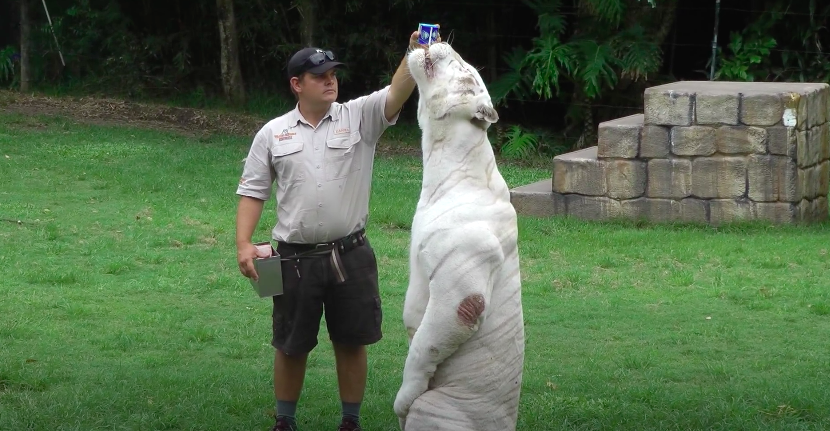 2020年05月28日老虎、獅子等猛獸在自然界中都是頂尖的捕食者,但那些生活在動物園中、從小被人類養大的猛獸,卻更像活潑可愛的「大貓」。國外一間動物園中的老虎就超會撒嬌,每次看到飼育員拿著牛奶過來,牠都會跑過來賣萌,那畫面看起來很有趣~