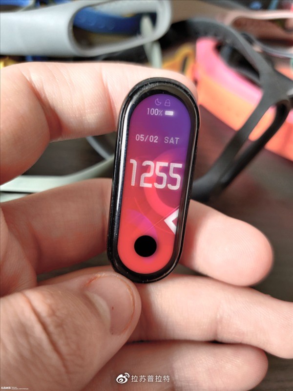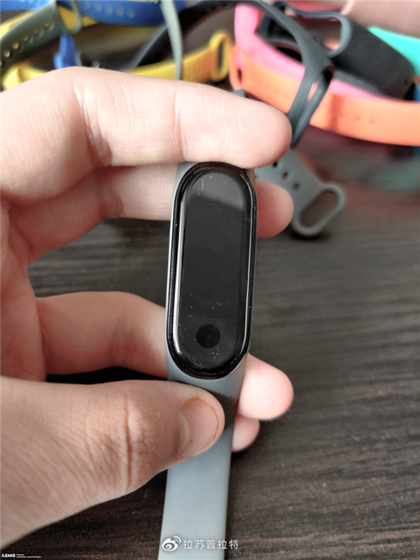 ▼由照片中可以看出,小米手環5最大的重點變化將是「螢幕」,由原先的方形變成橢圓形,而螢幕上圓圓的一點黑圈則是操作用的按扭。預計會支援有NFC、AI助理小愛同學、心律監測等功能。