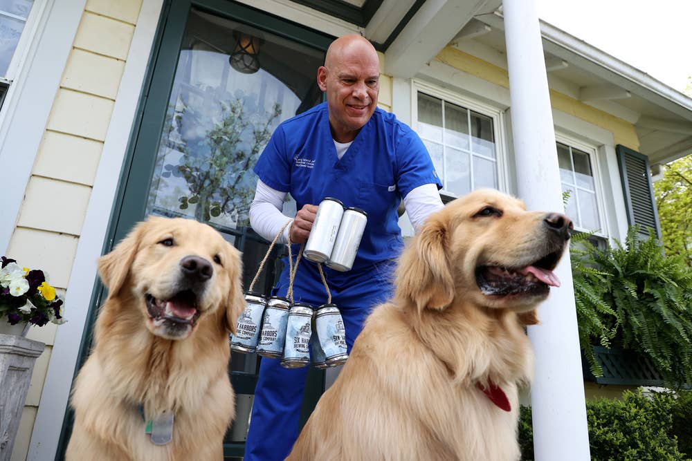 ▼這段隔離期間狗狗們有了新任務,那就是送啤酒!