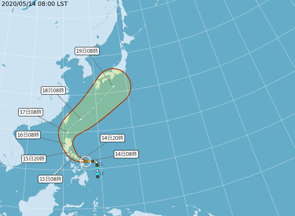 2020年05月14日根據中央氣象局5月13日晚間宣布,2020年的第一號颱風「黃蜂」已經威力增強、升級變成中度颱風。