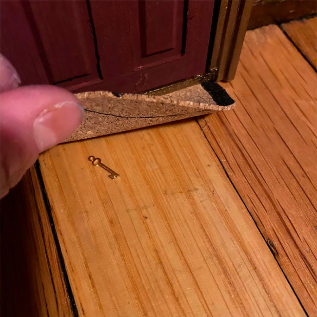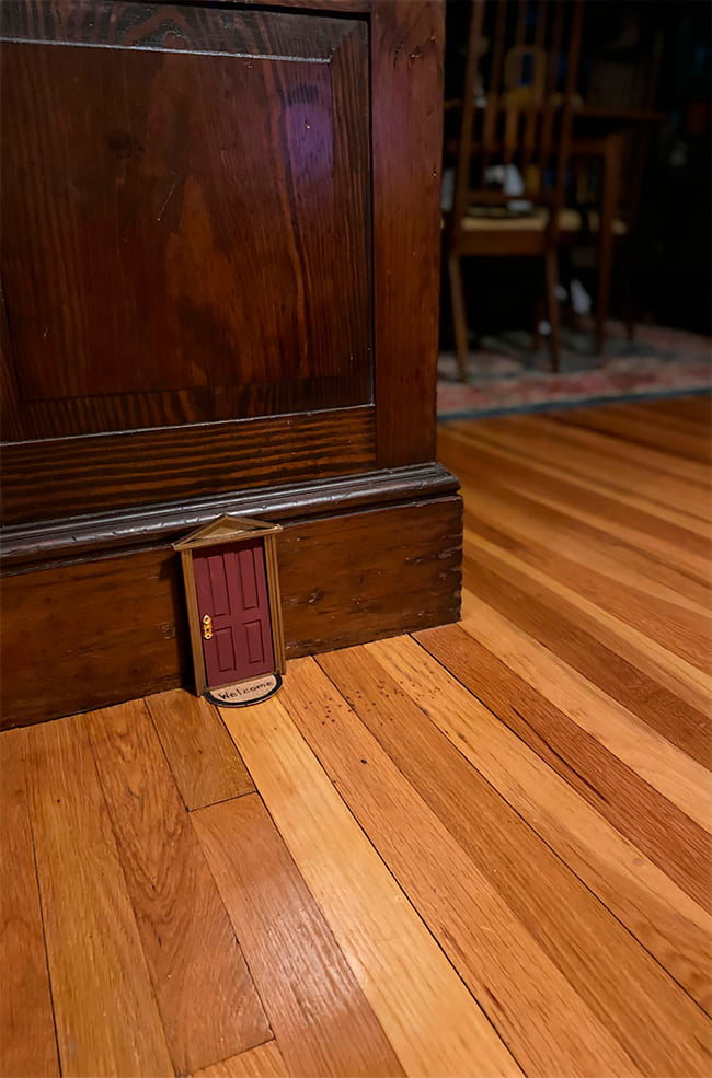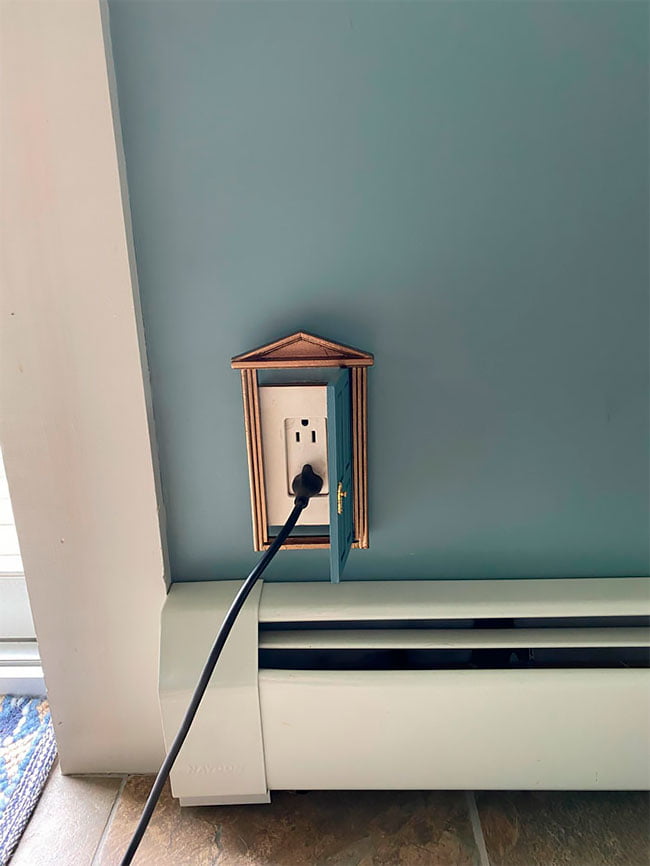 ▼Cristina一直很喜歡製作微型模型和玩具屋,根據房間的裝潢風格為插座加裝迷你小門,對她來說也很容易。這扇藍色的小門就很夢幻。