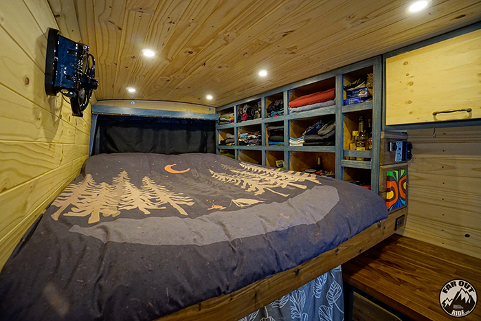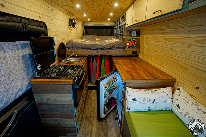 ▼小小的廂型車經過改造後,竟然可以塞進收納櫥櫃、烤箱和瓦斯爐一體的料理台、躺椅和床等等!