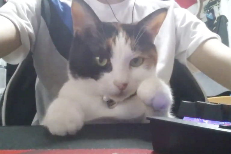 2020年05月28日乖巧的貓咪太惹人愛了!遊戲實況主@Twitch_Mqut養的三花貓「莎拉醬」(サラちゃん)可愛又聽話,每次主人玩遊戲,牠都會窩在主人懷裡,跟主人一起緊盯螢幕,還會興奮地伸出手揮啊揮,好像要親自上陣!