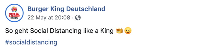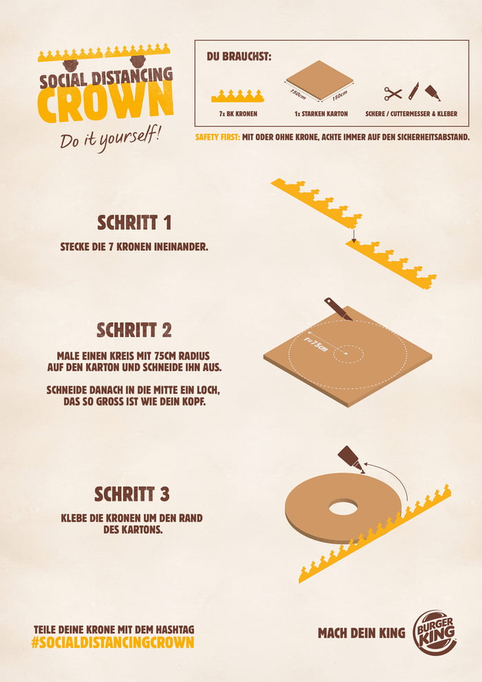 2020年05月31日隨著COVID-19趨緩,大家的生活逐漸恢復常態,但在人多的場所保持安全的社交距離仍舊很有必要。德國的Burger King漢堡王就想出了一個妙招,他們為客人提供直徑1.8公尺的巨型皇冠帽子,讓大家能夠安全用餐~