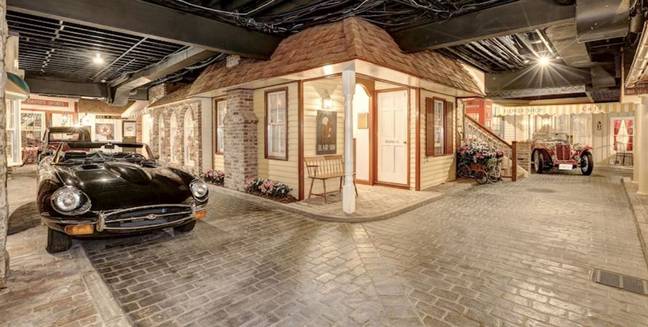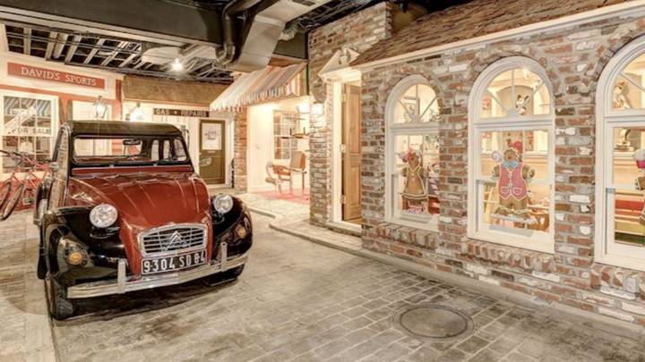 ▼最讓人驚喜的是這棟豪宅地下室的小鎮模型,從照片中能看到鋪著鵝卵石的街道、沿街停著幾輛汽車。