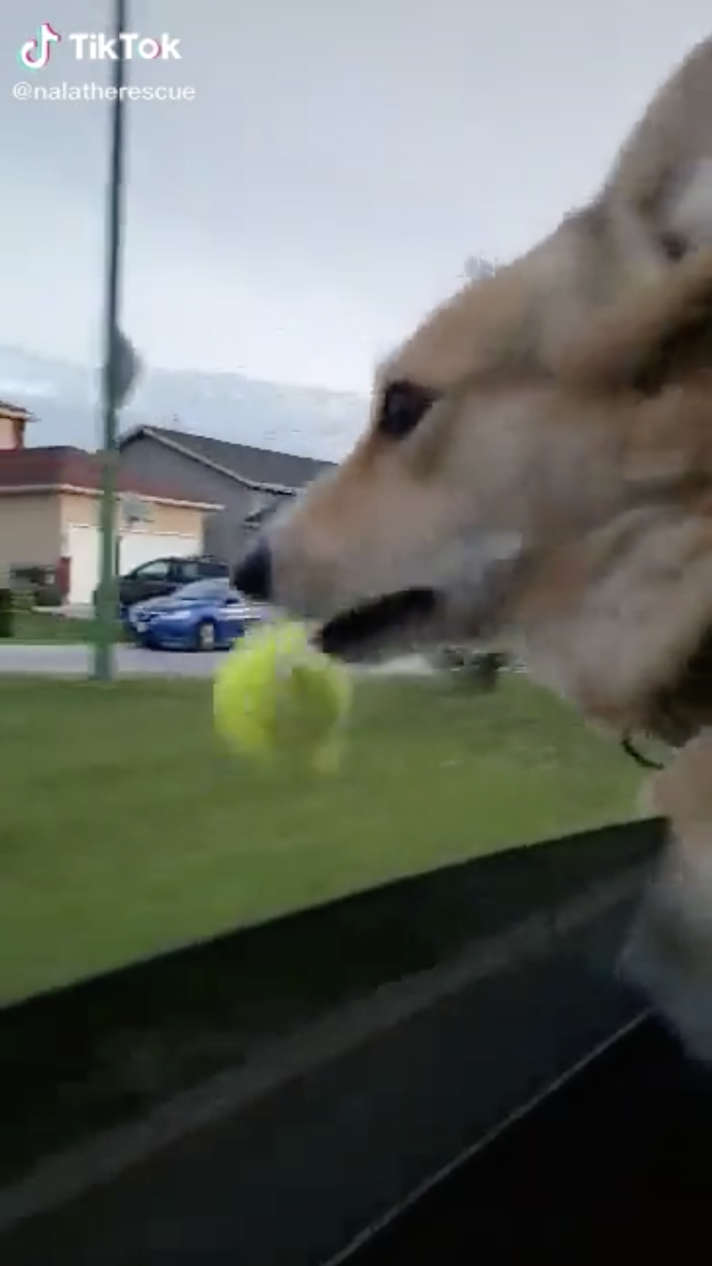 2020年06月03日狗狗愛玩是與生俱來的,有一位抖音用戶@nalatherescue分享家裡的狗狗Nala球叼著叼就掉出窗外的短片,因為狗狗無辜純真的表情,獲得了2千多萬次的觀看次數,更獲得5百多萬次讚。