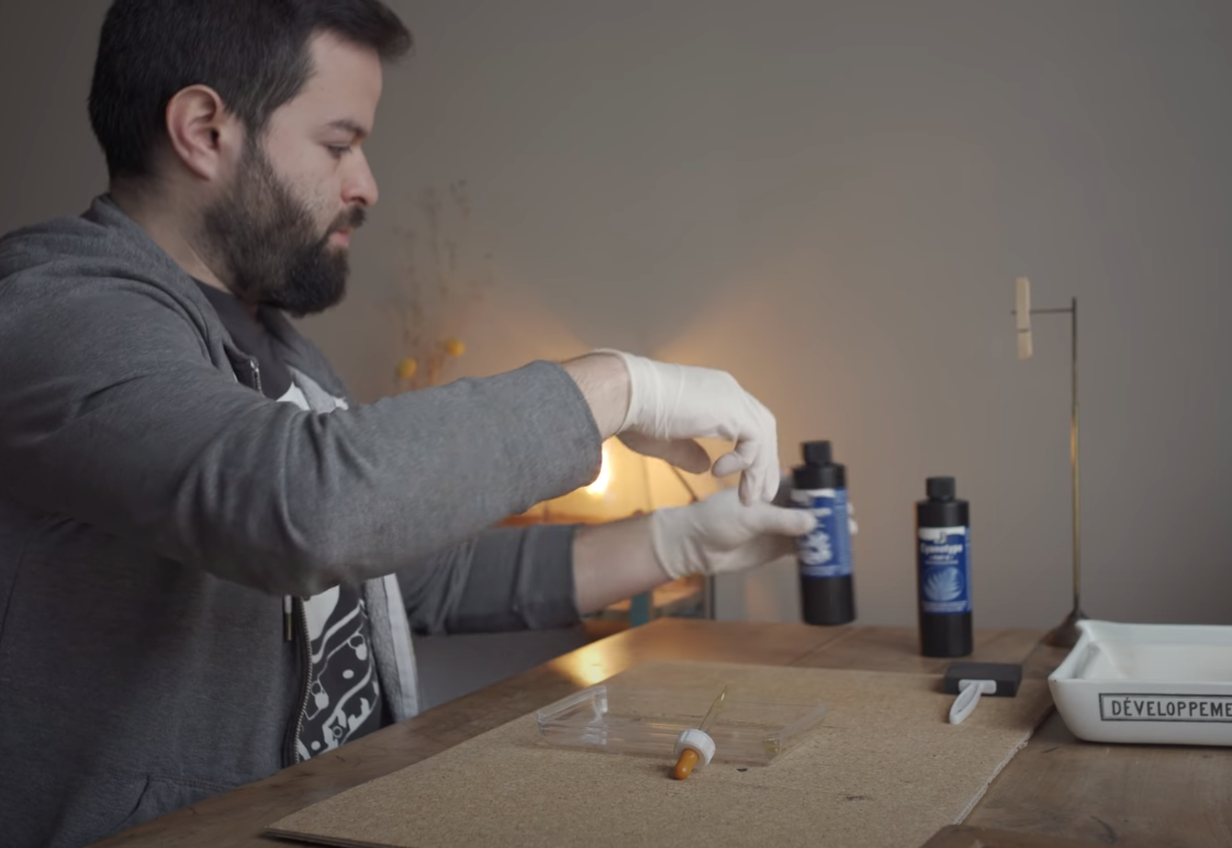 ▼這兩張底片似乎沒有被沖印過,被裝在信封中藏在最底層,應該是主人很珍惜的東西。身為攝影師,Mathieu決定親自沖印看看。