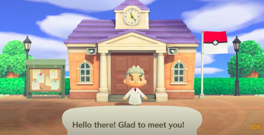 ▼《動物森友會》中的島民變成了寶可夢角色,首先由「硬木」博士(Hardwood)介紹這個夢幻的聯動世界。