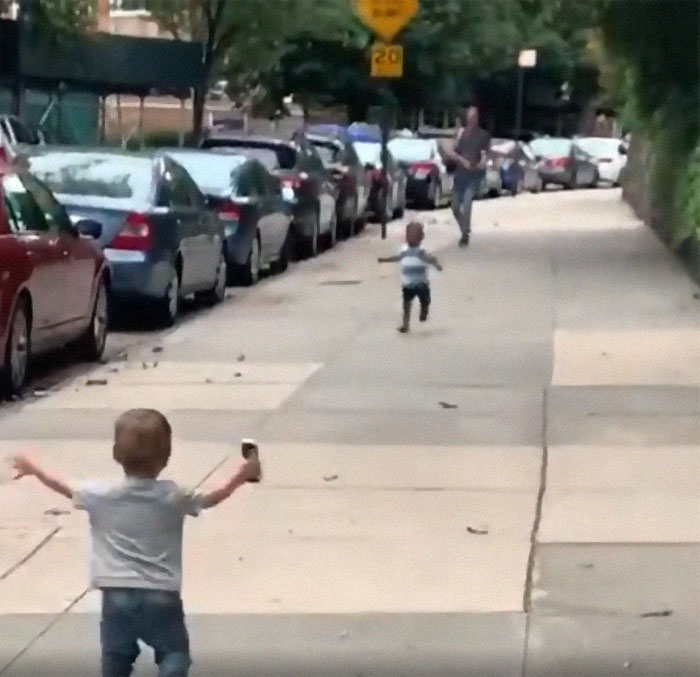 ▼2天沒見的Maxwell和Finnegan終於看到彼此,興奮地從街道兩端面對面跑過去。他們一邊跑一邊開心大叫,還張開雙臂擁抱彼此,就像好多年沒見一樣。