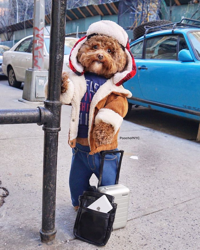 帥到能成為穿搭模特! 時尚汪「街頭質感文青風」萌化網:可愛又帥誰受得了~