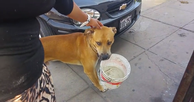 ▼當時天氣很熱,祕魯非常乾旱,當地河流、渠道等都乾涸了,在外討生活的動物們幾乎找不到自然的水源。這隻浪浪不知道從哪裡找來一個小水桶,竟然叼著它到處討水喝。