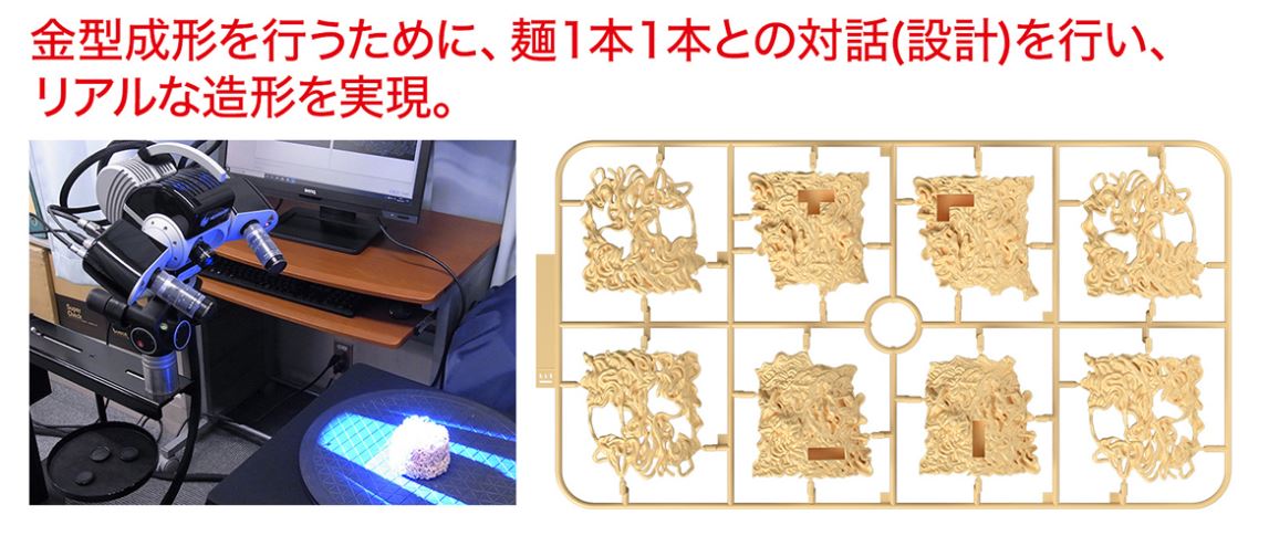 ▼BANDAI為了100%還原日清杯麵,首先掃出真實的杯麵麵條3D結構,準確建模製作塑膠零件。