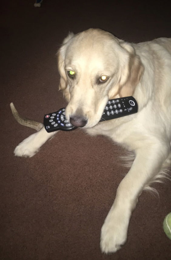 ▼Stella會叼起各種各樣的物品,有時候是水瓶,有時候是襪子,甚至還會叼起電視遙控器。