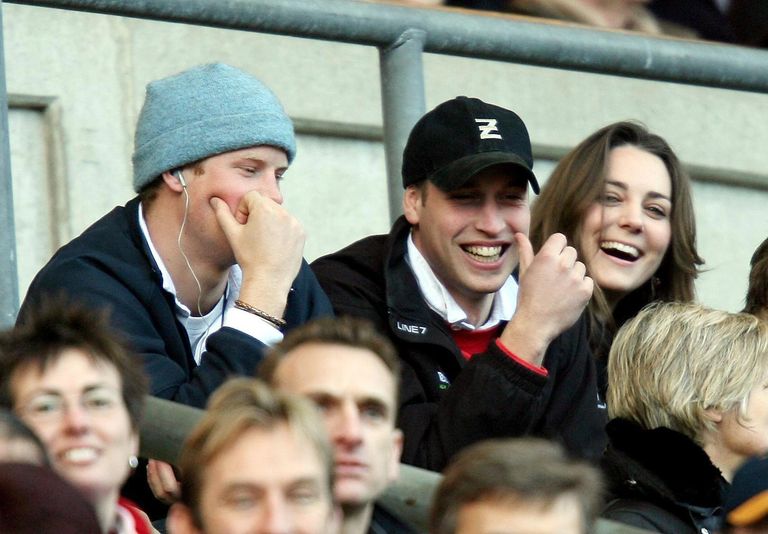 ▼2007年2月10日,凱特和威廉王子、哈利王子一起,在特威克納姆的RBS六國錦標賽上觀看橄欖球比賽。