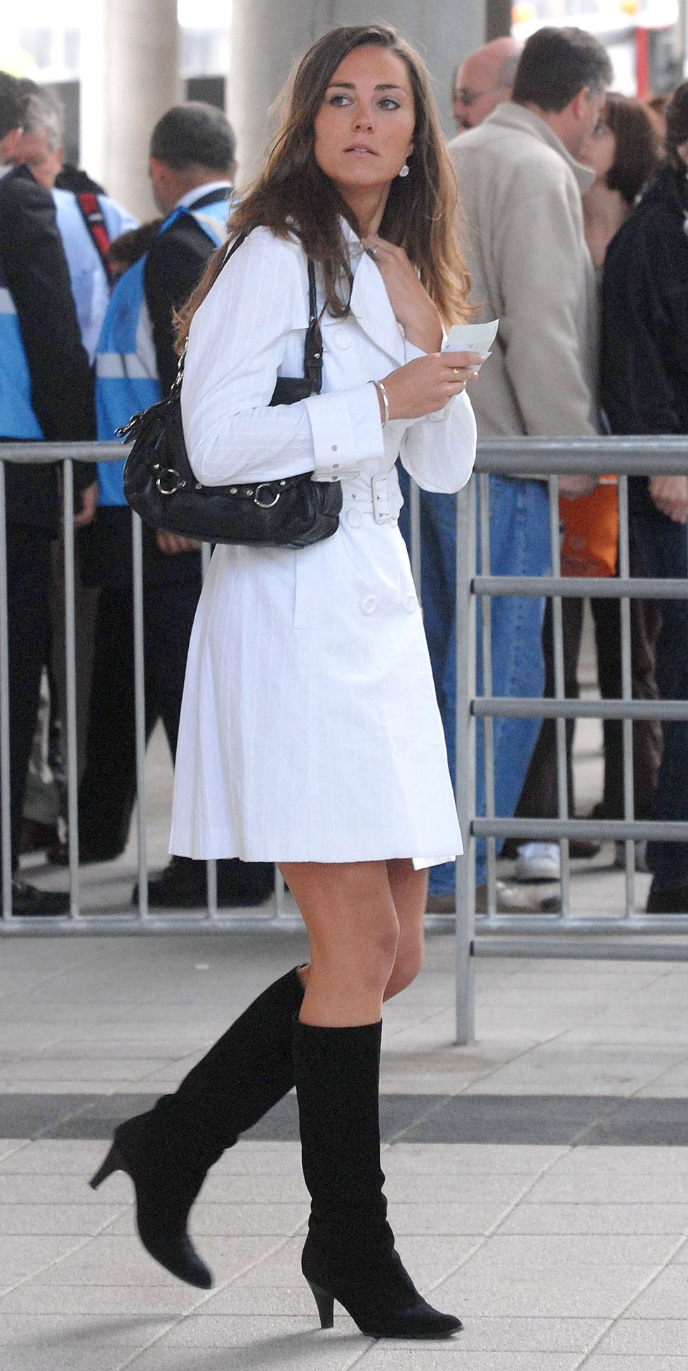 ▼2007年2月1日,凱特穿著V領吊帶裙,這樣的裝扮很少出現在她的身上。