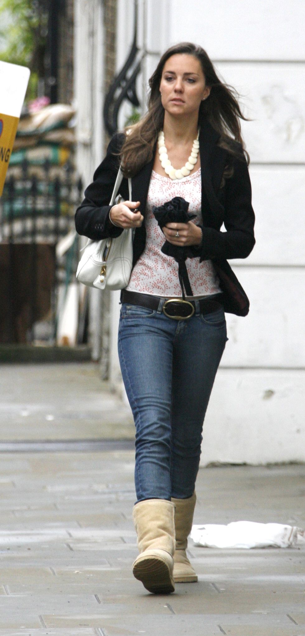 ▼2007年5月17日,凱特走在倫敦街頭,穿著牛仔褲和米色UGG靴子。