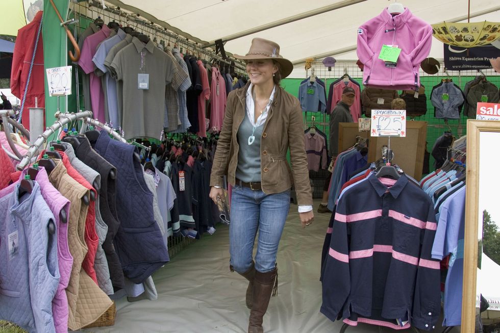 ▼2005年8月6日,凱特參加英國泰特伯里的蓋特科姆公園的慈善園遊會,穿衣風格是牛仔風。