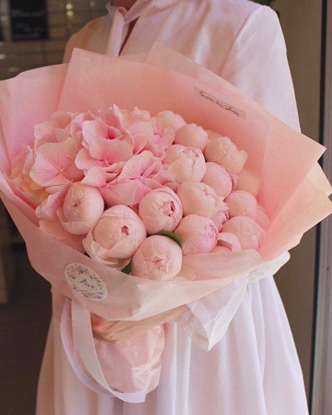 ▼這種花束的芍藥花朵呈球型,圓潤可愛。白色的花苞純潔大氣,粉色的花苞浪漫甜美。這種可愛、淡雅的花非常適合氣質女生,顯得含蓄典雅,不會過於豔麗。