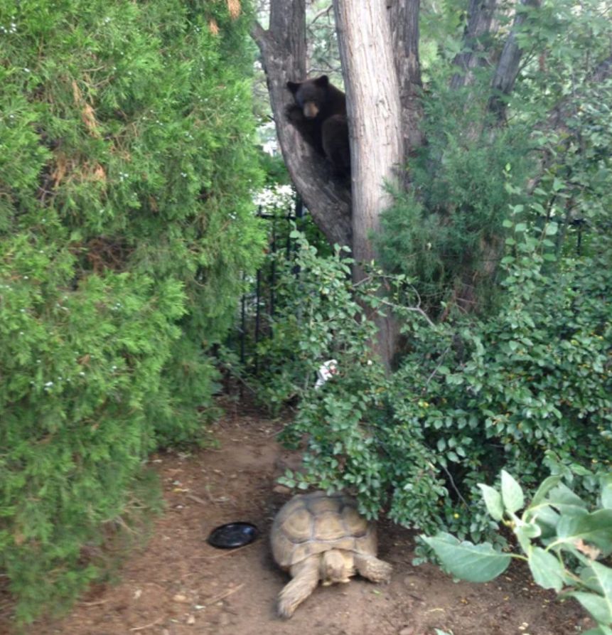 ▼3.黑熊被百歲烏龜嚇到,別看黑熊長得兇猛,其實也有膽小脆弱的一面。