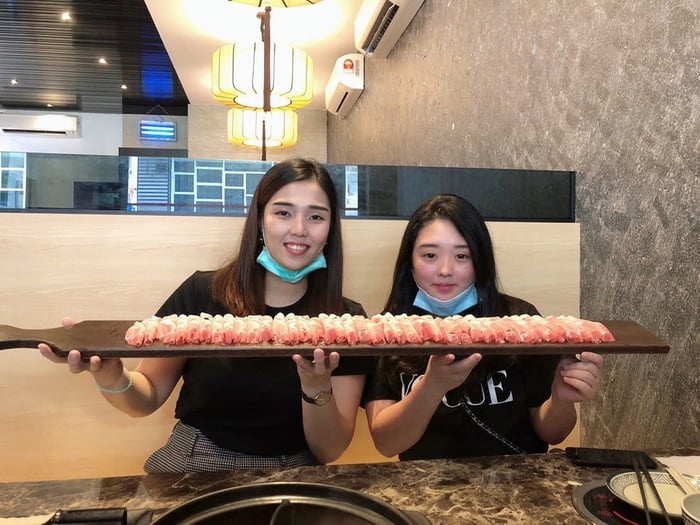 ▼火鍋店在臉書上說:「身高不是距離,吃肉不是壓力!各位矮個子們有福啦!本店將推出限時優惠,即日起凡是來本店光顧的客人,每一桌若有男生身高少過165cm,或女生身高少過155cm,且滿18歲以上,就免費贈送一盤長至1m的豬肉片!」