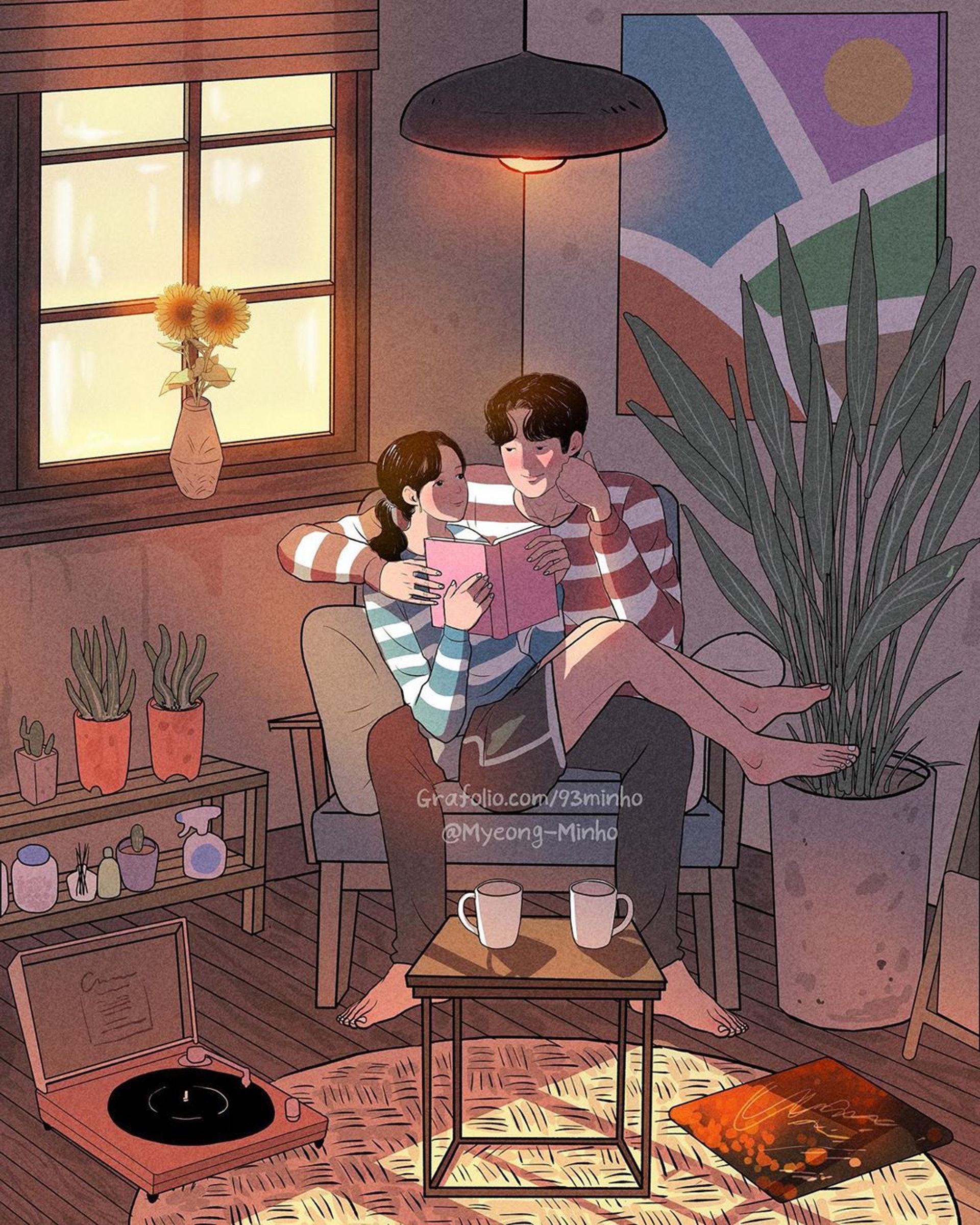 平淡日常的滿滿愛意! 韓國插畫家「平凡小夫妻家庭生活」超甜蜜:永遠把你放在心上~