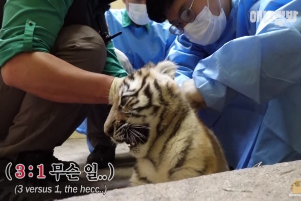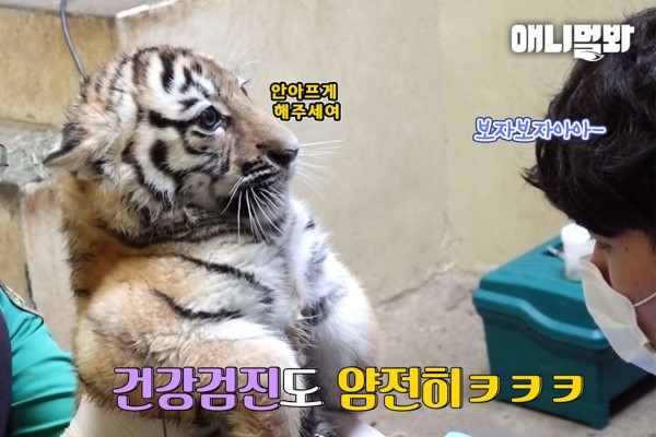 2020年06月19日老虎在韓國非常罕見,動物園中的老虎一般都能得到很好的照顧。日前一間動物園中的一對老虎成功配對,生下2隻虎寶寶,Mugung與Taebeom。虎寶寶第一次到戶外活動之前,工作人員要為牠們注射疫苗。牠們的反應太可愛了。